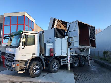 Mercedes 3244 Actros with MTS Dino suction unit. Twin-fan. Compressor. New container innerlining. New panels on outside container. New toolbox doors. Powerarm re-bushed. New suction hose and wear-parts. Machine freshly serviced and safety-checked. Complete with new set of airtools and suction pipes. Directly available